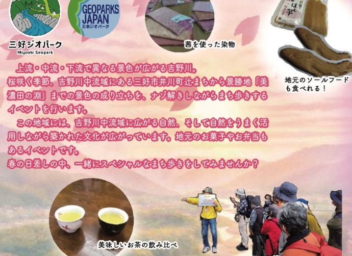 徳島県の西の端にある三好ジオパークエリア。ここには、山の斜面に点在する「傾斜地集落」、四国三郎暴れ川の名を持つ「吉野川」など不思議でステキな風景がたくさんあります。