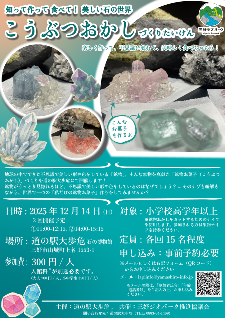 ...このような世界で一つだけの「鉱物お菓子」づくり体験イベントをきたる12月14日(日)、道の駅大歩危で開催します。