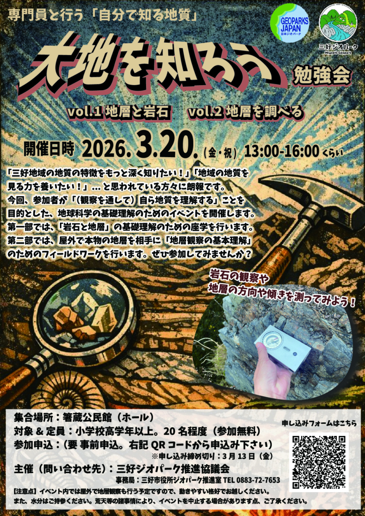 主催&問い合わせ先:三好ジオパーク推進協議会(事務局:三好市役所ジオパーク推進室:TEL 0883-72-7653)