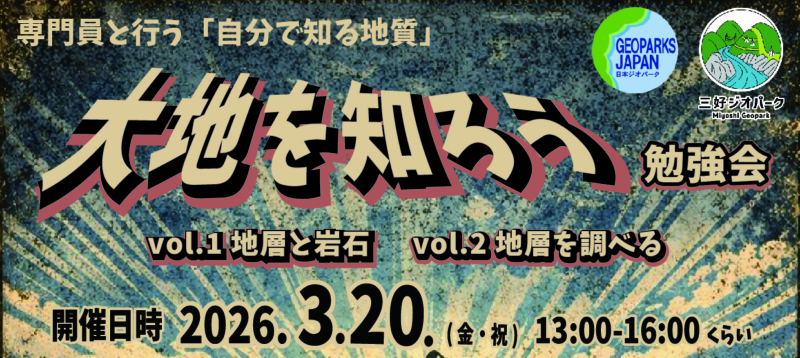 きたる 3月20日(金・祝)に、「三好地域の地質の特徴もっと深く知りたい」「地域の地質を見る力を養いたい」と思われている方に向けたイベントを開催します。