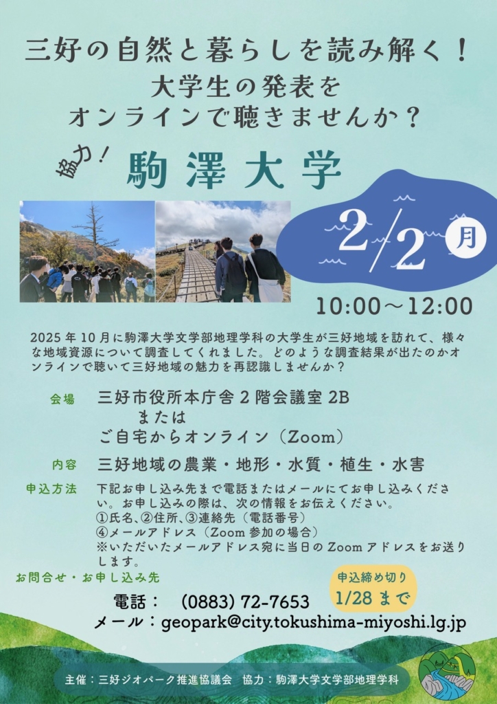 テーマ:「三好の自然と暮らしを読み解く!大学生の発表をオンラインで聴きませんか?」