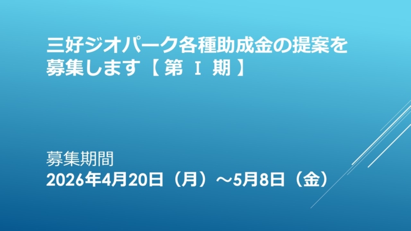 三好ジオパークでは今年度、エリア内ジオパーク活動の推進に寄与する研究や活動をされている研究者や団体等の皆さんに対して次の2つの助成事業を行います。
